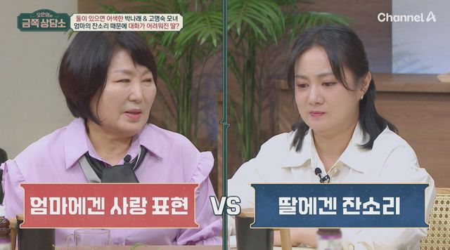 이날 박나래, 고명숙 모녀는 “서로 눈치를 보는 모녀, 둘이 있으면 어색해요”라는 반전 고민을 토로한다. “딸과는 살갑거나 애틋하지 않다”는 엄마 고명숙은 딸과 단둘이 여행을 간 적도 없고 둘이 가면 어색할 것 같다고 속마음을 밝히며 의외의 모녀 사이를 고백한다.