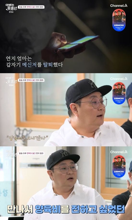 정재용은 "양육비를 돈만 보내긴 좀 그러니까 '마지막이라도 좋다. 얼굴 한 번만 보고 얘기하자' 이렇게 보냈는데 읽지도 않다가 탈퇴를 한 거다"라며 속상함을 드러냈다.
