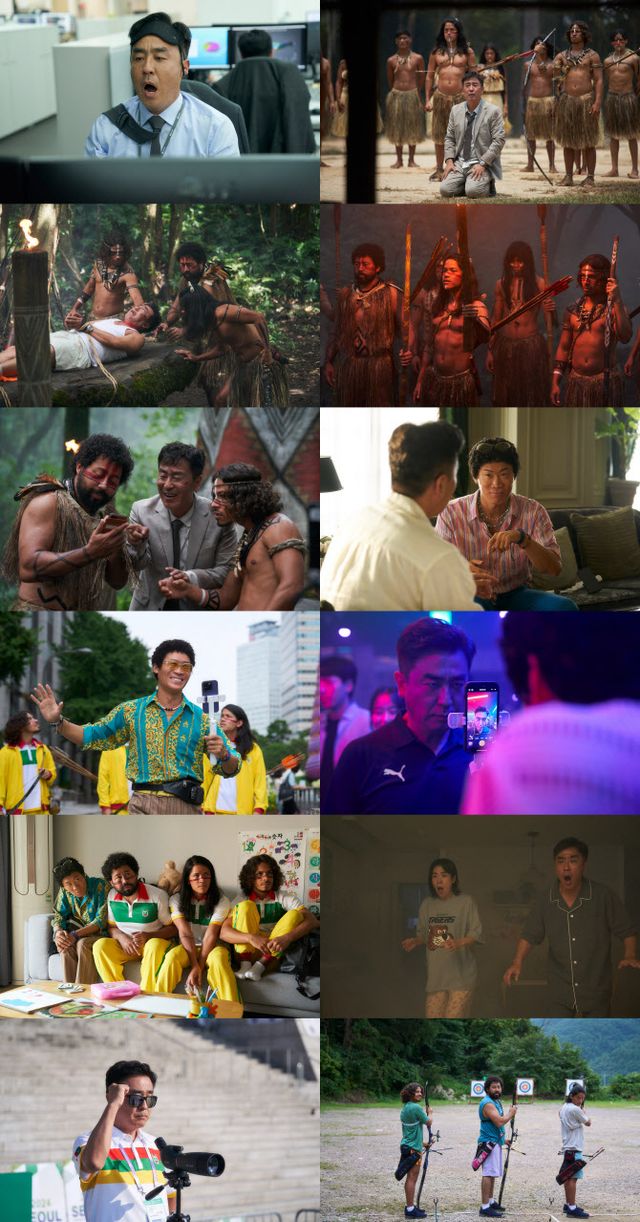 이번에 공개된 ‘아마존 활명수’의 1차 보도스틸은 지금껏 본 적 없던 새로운 소재와 스타일의 코미디를 예고해 기대감을 높인다. 먼저 전 양궁 국가대표였지만 현재는 구조조정의 위기에 봉착한 진봉(류승룡 분)이 아마존이라는 낯선 공간에 불시착한 모습을 보여준다. 이어 활의 명수 아마존 전사들을 마주하게 되고, 한 줄기 빛과 같은 한국계 볼레도르인 통역사 빵식(진선규 분)도 만나게 된다. 마침내 이들은 각자의 목표를 위해 양궁 세계선수권대회 출전을 결심 후 서울로 향한다. 지구 반대편 낯선 만남으로 시작된 이들이 서로 다른 언어와 문화를 이해하고 적응하고자 하는 모습들은 물론, 끝내 양궁이라는 스포츠로 하나 되는 모습까지 보여줄 예정으로 점차 한 식구가 되어가는 신선한 케미스트리에 대한 기대감도 고조시킨다.
