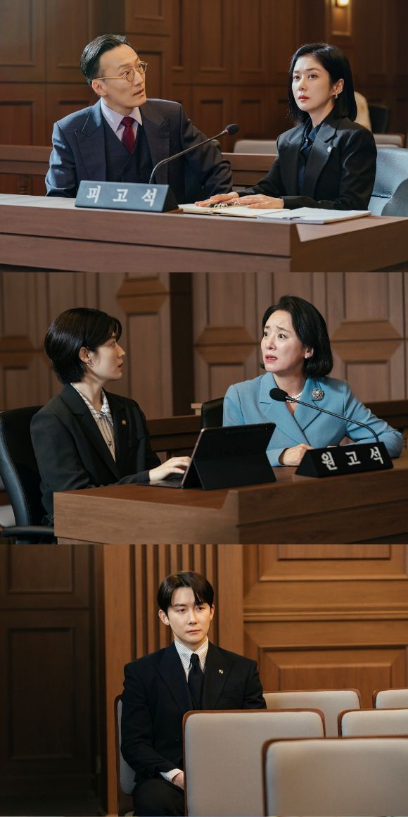 그런 가운데 공개된 사진은 아직 끝나지 않은 차은경, 한유리의 이혼 공방전을 예고한다. 또다시 상대방 변호사로 법정에 참석한 두 사람. 이들의 옆자리엔 한껏 달아오른 오대규와 그의 아내 박애연(손지나 분)이 불꽃 신경전을 벌이고 있어 눈길을 사로잡는다. 방청석에서 모든 상황을 지켜보고 있는 정우진(김준한 분)의 굳은 얼굴도 포착됐다. 과연 정우진 가족에게 어떤 사연이 있는 것일지, 차은경과 한유리가 또 어떻게 사건을 해결해 나갈지 궁금증을 증폭시킨다.