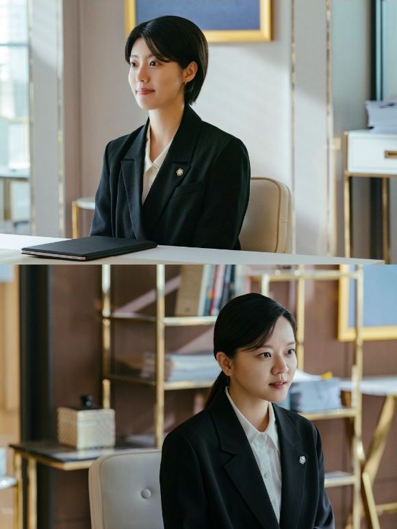 법무법인 대정에 첫 출근한 새로운 얼굴도 공개됐다. 홀로 신입변호사 이한나(고아성 분)를 맞이하고 있는 한유리. 남다른 아우라가 느껴지는 이한나의 비장한 눈빛이 흥미롭다. 앞서 공개된 예고편에서 차은경에게 “신입변호사님이 들어왔는데 제가 어떻게 가르쳐 줘야 하는지”라고 고민을 상담하는 모습이 그려진바, 첫 후배를 들이게 된 한유리에게 어떤 일이 벌어질지 호기심을 자극한다.