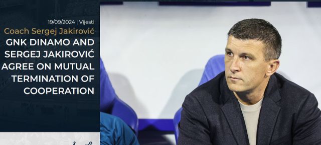 디나모는 19일(한국시간) 세르게이 야키로비치 감독과 상호해지로 결별했다고 밝혔다. 상호해지 형태를 취하고 있지만 유럽 현지 언론들은 경질로 보고 있다.