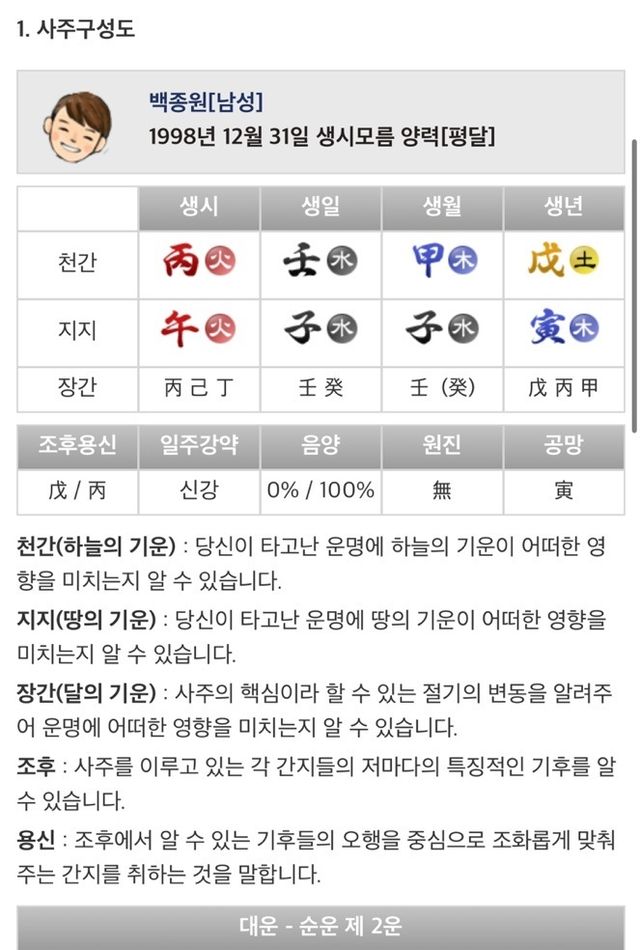 위키사주 백종원 사주풀이 일부분 / 위키사주