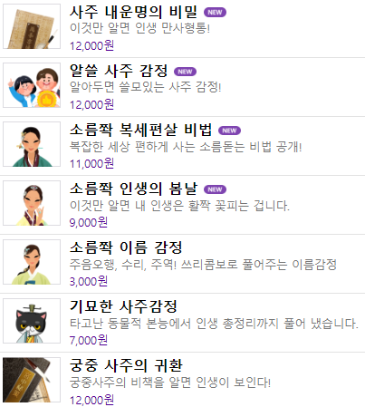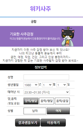 위키사주 기묘한 사주감정 화면 / 위키사주