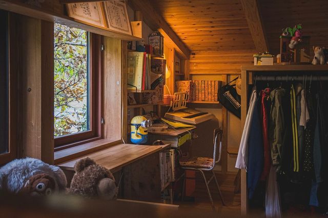 2층에는 침실, 아이들 공간, 수납공간, 그리고 욕실이 있습니다. 천장 높이가 지붕 모양과 같아 남쪽은 낮고 북쪽은 높은 구조입니다. 천장이 낮은 쪽에 침실을 두어 아이들이 아늑하게 감싸진 공간에서 편안히 잠들 수 있도록 했습니다.