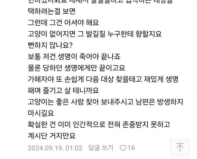 남친 버리고 남편버리고 당장 이혼하고 고양이랑 살라고