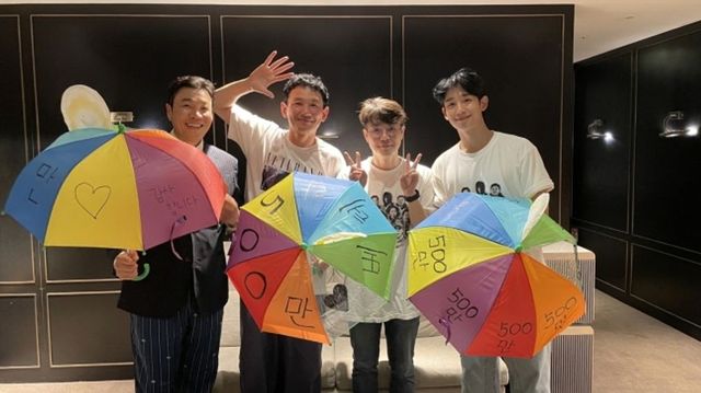 특히 황정민은 유튜브 채널 ‘CJ ENM Movie’ 채널 쇼츠에서 우산을 쓰고 있는 신승환, 정해인에게 직접 물을 뿌리며 “500만 감사합니다”라고 외쳤다.