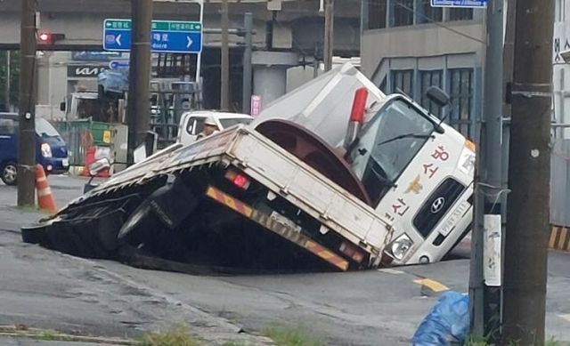이 사고로 당시 도로에서 배수 지원을 하던 부산소방본부 배수 차량이 싱크홀에 빠졌고, 바로 옆으로 지나가던 5t 트럭도 구멍으로 빠졌다.
