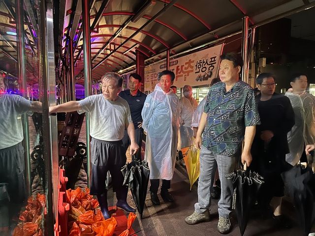 비상근무에 나선 공무원들은 범람에 대비에 당진천 주변의 출입을 통제하고,어시장 인근 침수에 대비해 모래주머니를 날랐다.또한 양수기를 긴급 투입해 침수 도로의 배수 작업을 이어갔다.