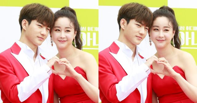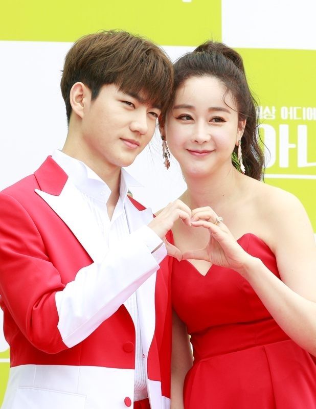진화, 함소원이 2020년 인천 중구 운서동 파라다이스시티 스튜디오파라다이스에서 열린 TV조선 예능프로그램 ‘아내의 맛’ 100회 특집 포토콜 행사에 참석해 하트를 그리고 있다. / 뉴스1