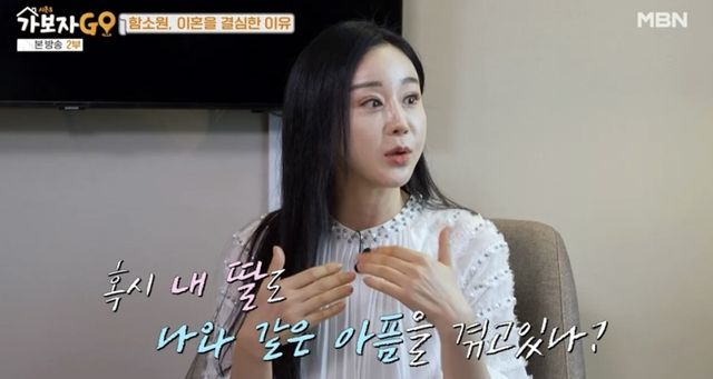함소원은 “전남편과 결혼 후 일까지 함께 하다보니 잦은 싸움이 생겼다. 어린 시절 자주 싸우시던 부모님 밑에서 자랐던 나처럼 딸도 같은 생각을 하며 자라는 게 아닐까 걱정됐다“라며 “어느날 딸이 ‘싸우지 말라’고 하더라. 그때 ‘이제 그만 해야겠다’라는 생각이 들었다”라고 이혼을 결심하게 된 이유를 밝혔다.