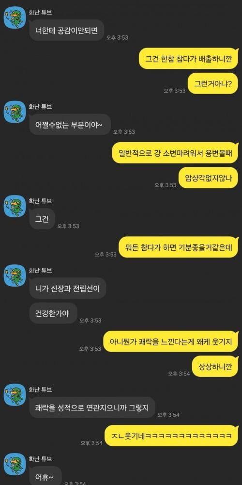 저번에는 무슨 식민지의 남성성인가 뭐라해서 찾아봤더니 페미용어더만 요즘 대화가 다 이모양이네