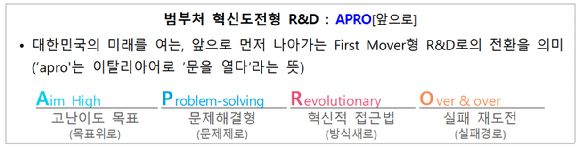 [아이뉴스24 정종오 기자] 과학기술혁신본부(본부장 류광준)는 실패 가능성이 높은 고위험․고난이도 목표를 지향하는 혁신·도전형 R&D 사업(앞으로(APRO) R&D)에 대해서는 결과주의적 평가 등급을 폐지하고 과정 중심의 정성평가로 전환한다고 22일 발표했다.