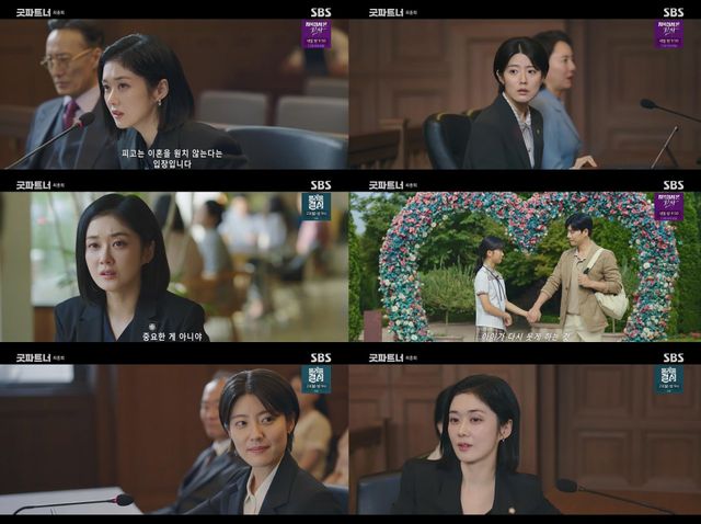 한편, 법무법인 대정에는 새 신입변호사가 들어왔다. 서툴기만 하던 신입변호사에서 이제는 후배에게 충고도 마다하지 않는 ‘에이스’ 변호사로 거듭난 한유리의 성장은 미소를 자아냈다. 그리고 차은경과 한유리의 법정 공방은 계속됐다. 한 치의 물러섬 없는 치열한 소송전을 벌이면서도, 여전히 서로의 성장자극제가 되어주는 두 사람은 둘도 없는 굿파트너가 됐다. 서로를 향해 미소 지으며 함께 나아가는 차은경과 한유리의 모습은 마지막까지 훈훈한 감동을 안겼다.