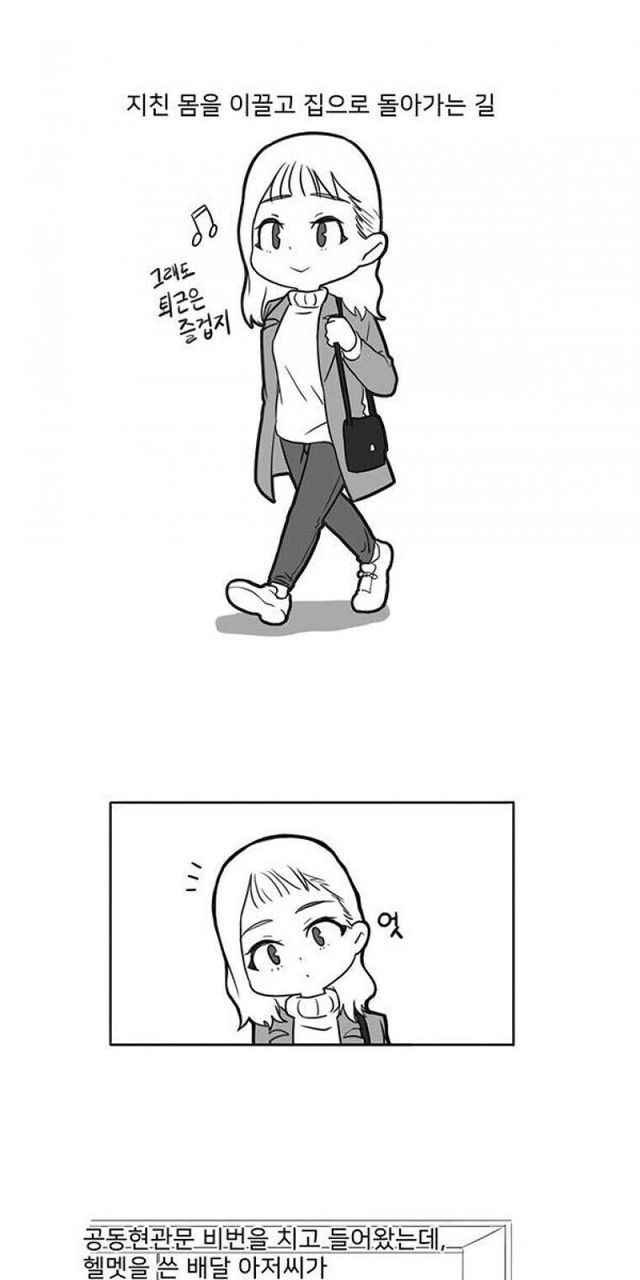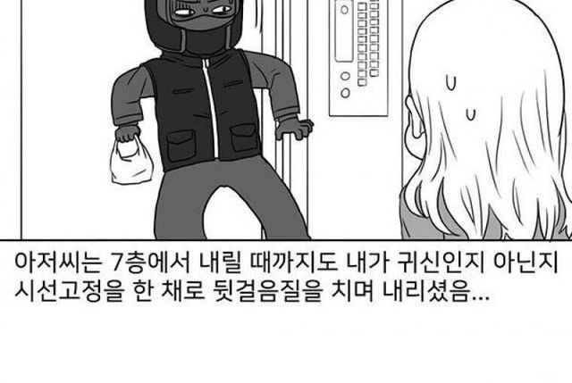 배달원과 같이 엘리베이터 탄 여자