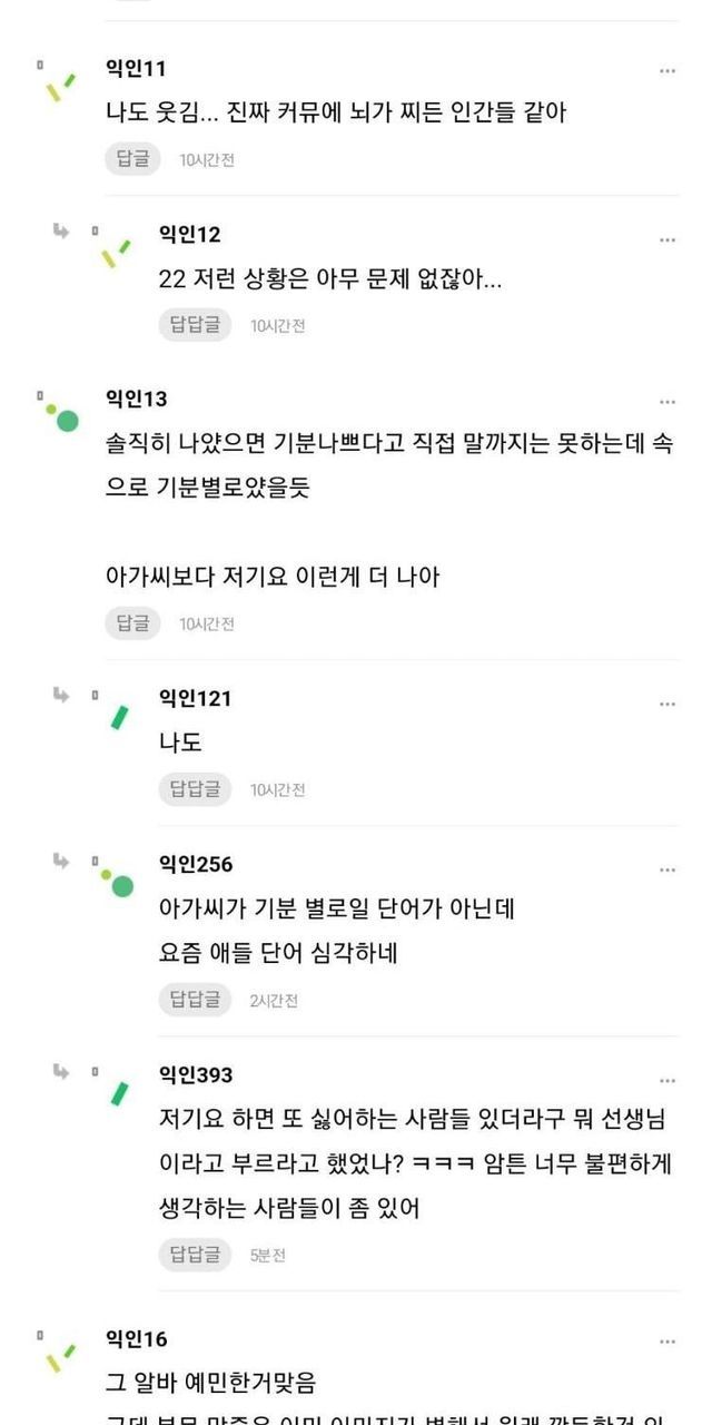 음식점가서 혹시모르니 아가씨라는 단어 쓰지말아야되나,,