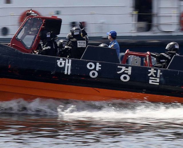 해경대원들이 고속단정을 이용해 불법외국어선(모의선)에 대한 종합전술을 선보이고 있다. / 뉴스1 자료사진