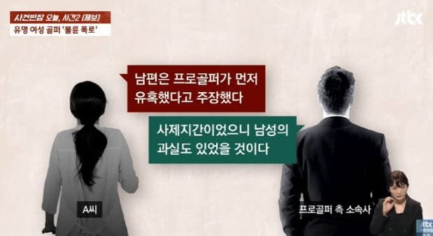 지난 6월 JTBC '사건반장'에는 프로골퍼 M양이 자신의 남편과 불륜관계를 맺었다는 아내 A씨의 제보가 보도됐습니다.