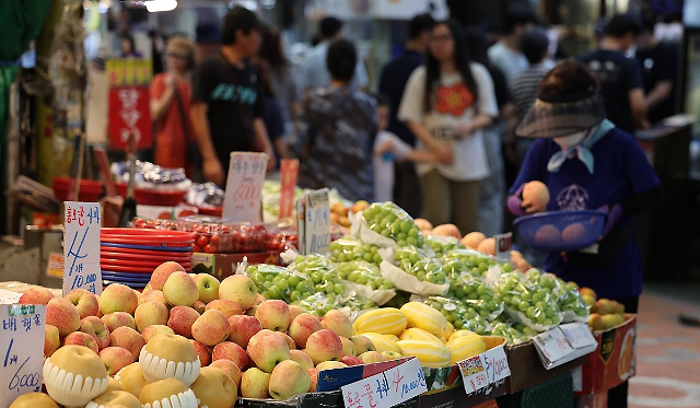 1日,首尔一家传统市场水果摊【图片来源 韩联社】