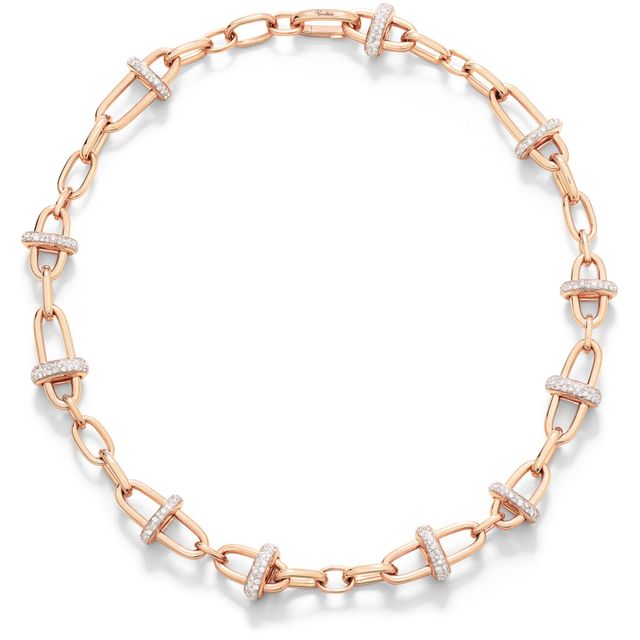 포멜라토의 이코니카 컬렉션은 유서 깊은 금세공 헤리티지에 경의를 표하며 주얼리 애호가들의 마음을 사로잡아 왔죠. 포멜라토 까사 특유의 깔끔한 라인과 매끈한 조각 같은 형태에서는 장인들의 흔들림 없는 헌신을 느낄 수 있는데요. 이번 뉴 이코니카 컬렉션 역시 기존 컬렉션의 철학과 감각을 고스란히 반영했습니다. 대담한 18k 로즈 골드의 네크리스와 브레이슬릿, 링 등으로 구성했어요.