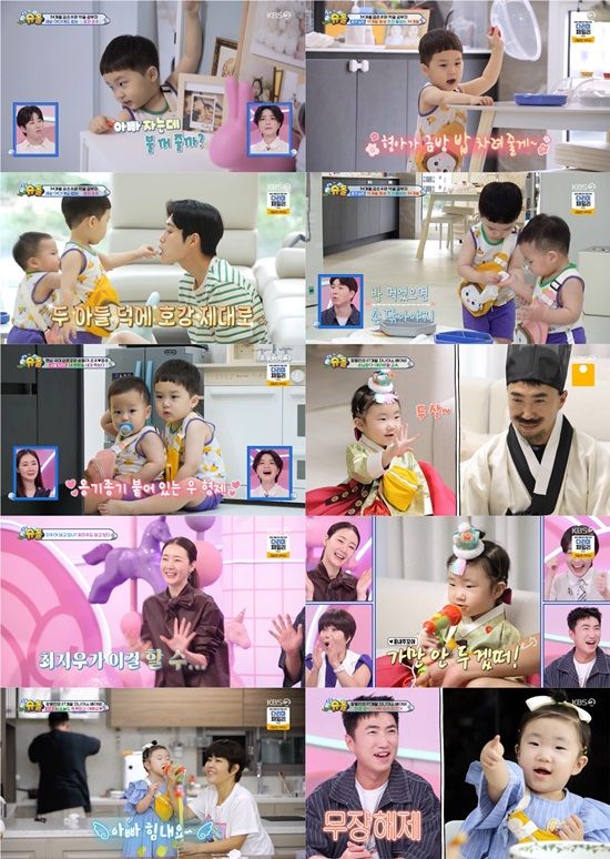 이날 방송은 '잘 자라줘서 고마워' 편으로 2MC 최지우, 안영미와 슈퍼맨 장동민, 박수홍, 딘딘이 함께했다. 이중 은우는 아픈 김준호를 위해 아빠와 동생 정우를 책임지며 34개월 꼬꼬마 효자로 거듭났고, 지우는 32년 차 개그우먼 조혜련을 만나 27개월 언어, 개그 천재의 영특한 매력으로 보는 이들을 사로잡았다