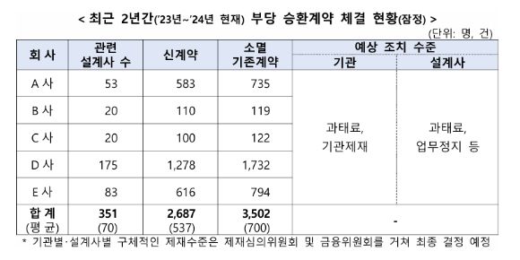 부당 승환 계약 체결에 가담한 설계사는 총 351명이다. 일례로 설계사 1명이 총 39건의 새로운 보험 계약을 모집하면서 41건의 기존 계약을 부당하게 없앴다.