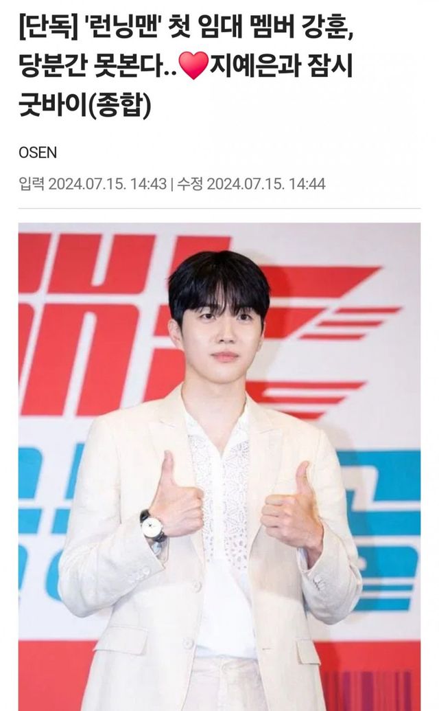 강훈, 런닝맨 4주 임대 계약 종료, 잠시만 안녕