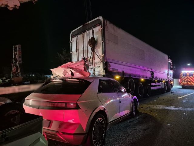 사고는 고속도로 1차로를 달리던 25톤 화물차가 앞서가던 다른 25톤 화물차를 들이받으며 일어났다. 이어 뒤따르던 A씨의 승용차도 추돌한 것으로 알려졌다.