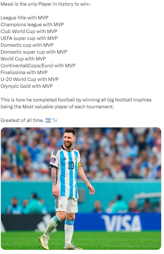 메시는 참가할수 있는 모든 대회 MVP를 수상한 역사상 유일한 축구선수