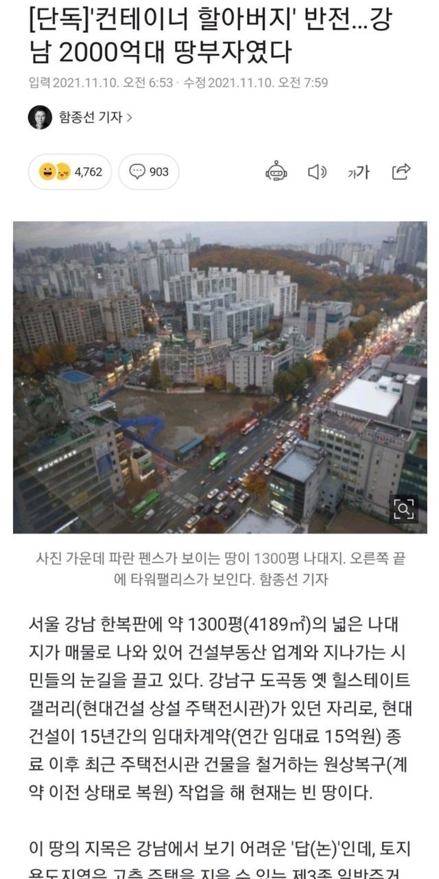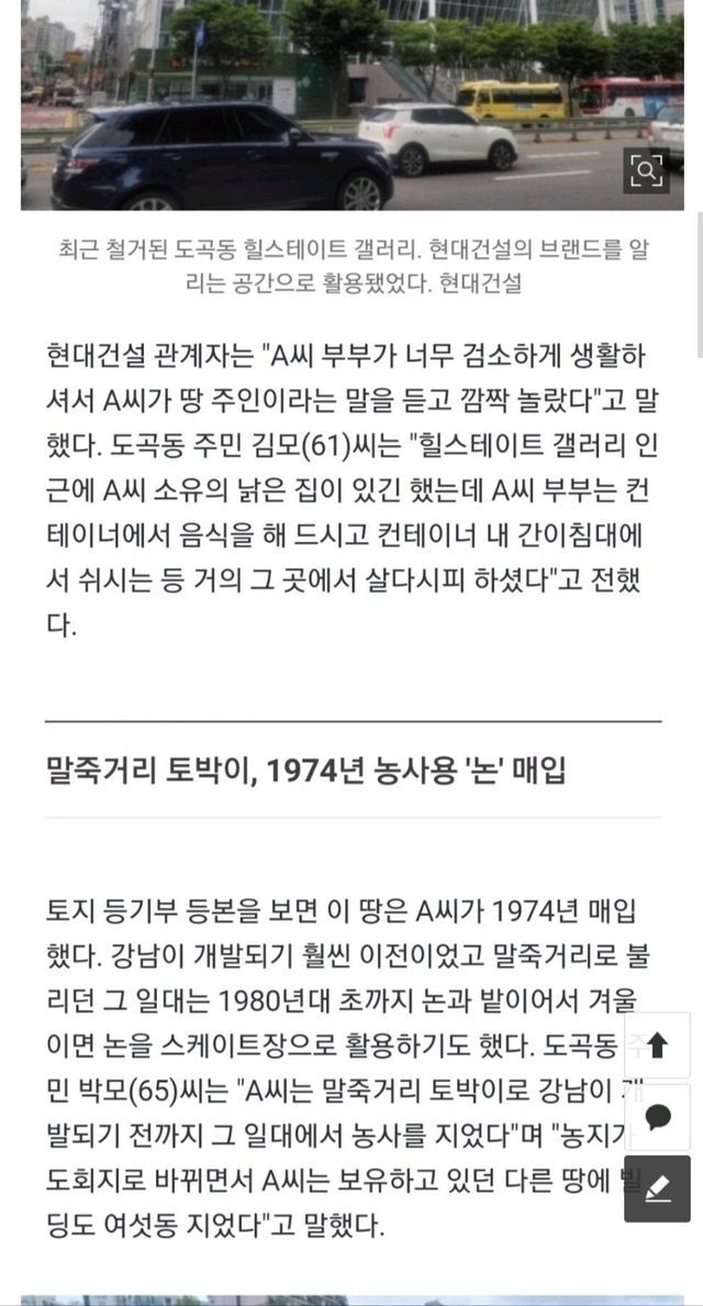참고로 저 할아버지는 도곡동 땅말고도 강남에 빌딩이 6채가 더 있는데 임대료를 수십년간 안올려서 주위사람들에게 평가도 좋았다함…