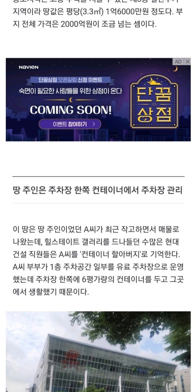 매물로 나왔는데 땅주인이 알고보니 주택전시관 한켠에 있는 주차장 컨테이너에서 살던 할아버지였음
