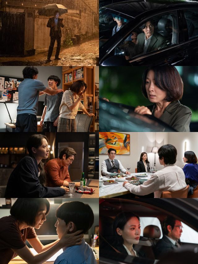 공개된 2차 보도스틸 9종은 아이들의 범죄 사실을 알게 된 후 소용돌이처럼 요동치는 4인의 모습을 담고 있다. 빗 속에서 영상을 보고 있는 ‘재완’(설경구 분)과 아들을 추궁하는 ‘재규’(장동건 분)와 눈물을 글썽이는 ‘연경’(김희애 분), 심각한 표정으로 가족들을 바라보고 있는 ‘지수’(수현 분)의 모습은 믿고 싶지 않은 진실을 알고 난 후 서서히 드러나는 인간의 내면을 보이며 긴장감을 더한다. 특히 차가운 분위기의 식사자리와 서로 멱살을 잡는 ‘재완’과 ‘재규’의 모습은 점차 균열이 나타나기 시작한 가족의 관계를 고스란히 담아내며 소용돌이 치는 감정의 절정을 보이고 있다. 점점 격해지는 감정을 모두 담은 2차 보도스틸은 이성을 잃을 정도의 사건 스케일을 암시하며 이들이 선보일 웰메이드 서스펜스의 장르적 재미에 대한 기대를 높인다.