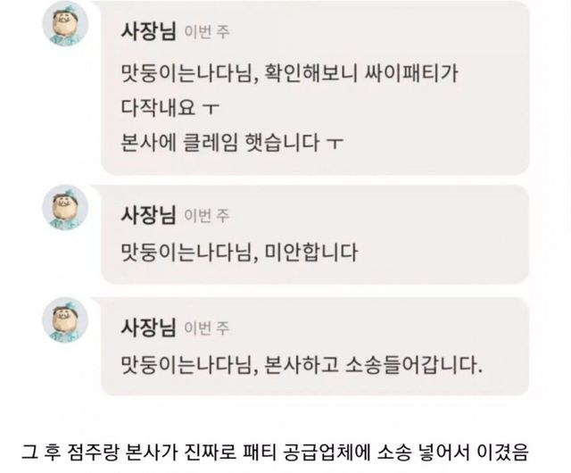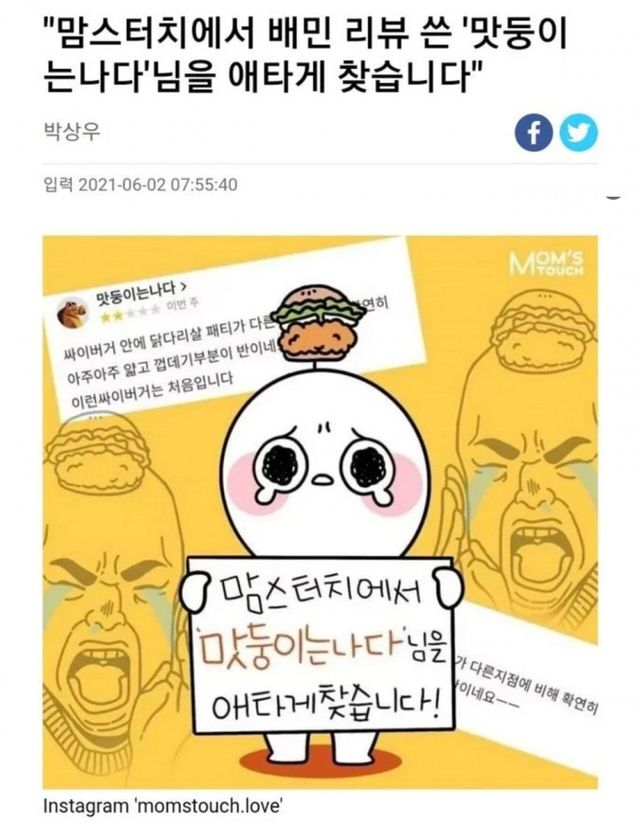한 고객이 남긴 맘스터치 리뷰의 스노우볼