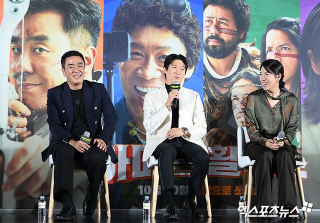 24일 서울 광진구 롯데시네마 건대입구에서 영화 '아마존 활명수'(감독 김창주)의 제작보고회가 열렸다. 현장에는 배우 류승룡, 진선규, 염혜란, 김창주 감독이 함께했다.