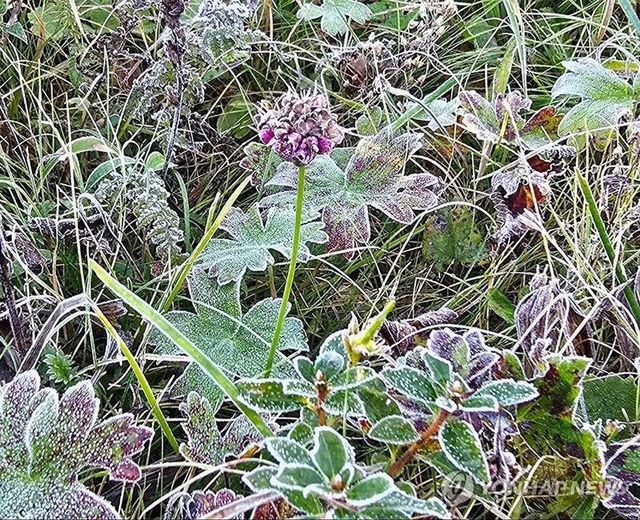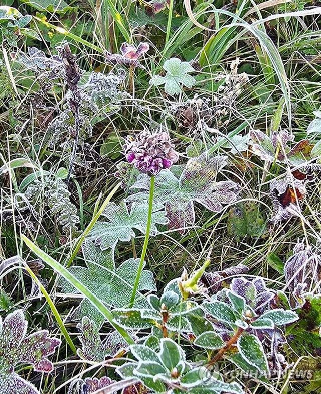 기상청과 설악산 국립공원사무소에 따르면 24일 강원 속초시 설악산 국립공원에 올가을 첫서리가 내렸다. 이날 오전 7시쯤 설악산 대청봉 일대에서 서리가 관측됐다.
