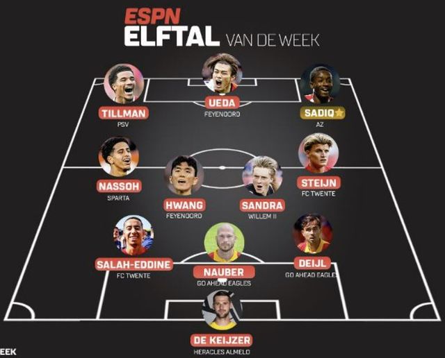 ‘EPSN 네덜란드’는 24일(한국시간) 2024~25 에레디비시 6라운드 베스트11을 공개했다.