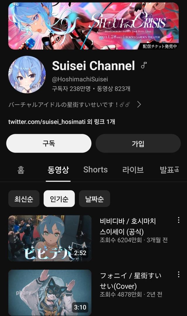 호시마치 스이세이라고 일본 유명 버튜버가 중국 진출하면서 중국팬덤이 커짐