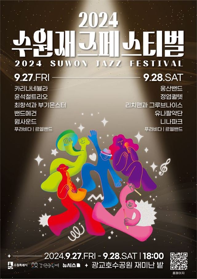 (수원=뉴스영 김영식 기자) 웅산밴드, 정엽퀄텟, 윤석철트리오, 카리나네뷸라 등 정상급 재즈 아티스트의 공연을 즐길 수 있는 ‘2024 수원재즈페스티벌’이 9월 27·28일 오후 6시 광교호수공원 재미난 밭에서 열린다.