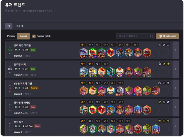 글로벌 게임 통계 및 분석 플랫폼 OP.GG(이하 오피지지)가 TFT.OP.GG에 유저들이 직접 만든 덱을 업로드 할 수 있는 ‘유저 트렌드’ 기능을 정식 출시했다.