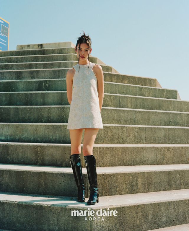 오른쪽 | 브로케이드 드레스, 레더 부츠 모두 Celine by Hedi Slimane.
