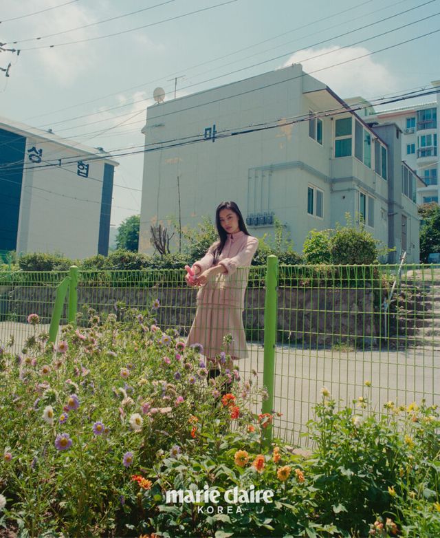 왼쪽 | 옅은 핑크 컬러의 트위드 재킷과 퀼로트 스커트, 패브릭 하이 부츠 모두 Chanel.