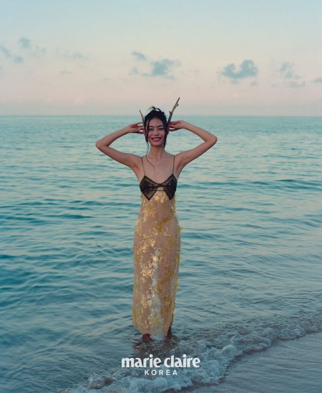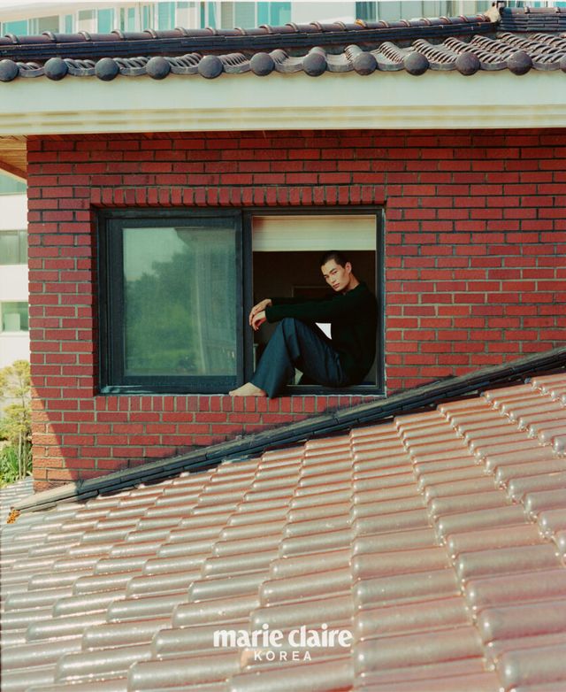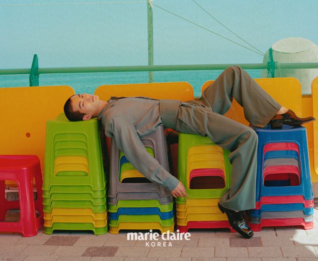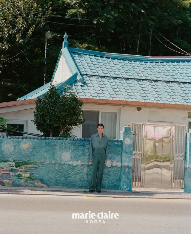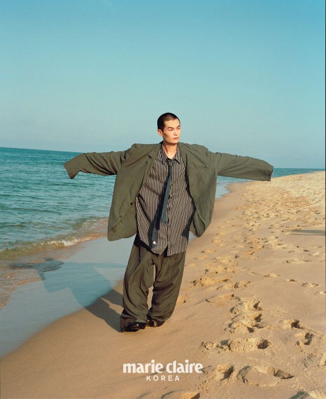 왼쪽 | 세이지 그린 셔츠, 와이드 팬츠, 커머번드 모두 Jaybaek Couture, 슈즈 Saint Laurent by Anthony Vaccarello.