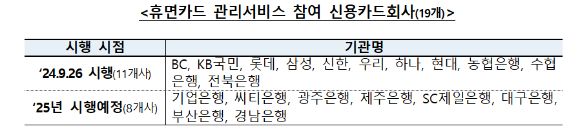 휴면카드 관리 서비스 참여 신용카드사는 오는 26일 11개사에서 내년 19개사로 늘어난다.