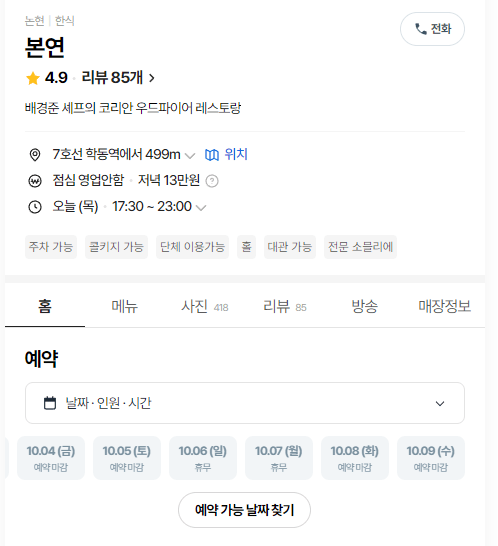 오히려 예약 가능한 백셰프 레스토랑이 더 많음.