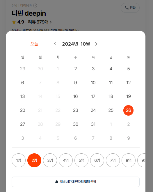 다음 예약 오픈 전까지 예약 불가.
