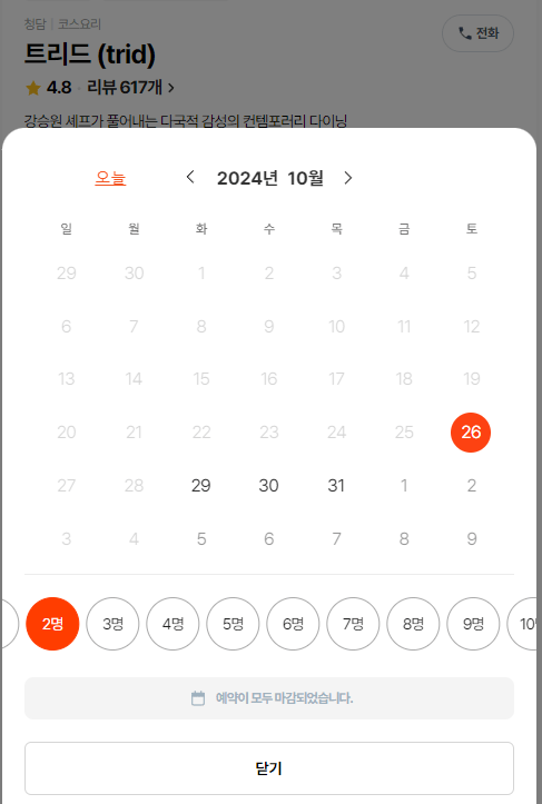 기간 내 전부 예약마감.