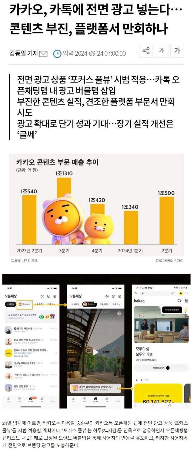 이제는 오픈채팅방에 전면광고(전체화면) 광고 쳐 넣는 카카오 클라스 ㅇㅈ?
