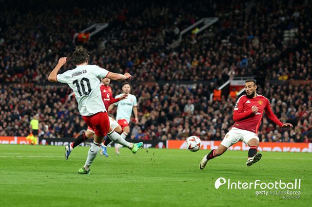 맨유도 당하고 있지 않았다. 전반 18분 아마드 디알로가 측면 돌파 후 낮은 크로스를 시도했지만 수비수에게 걸렸다. 이후 세컨드볼을 브루노 페르난데스가 마무리했지만 제대로 맞지 않았다.