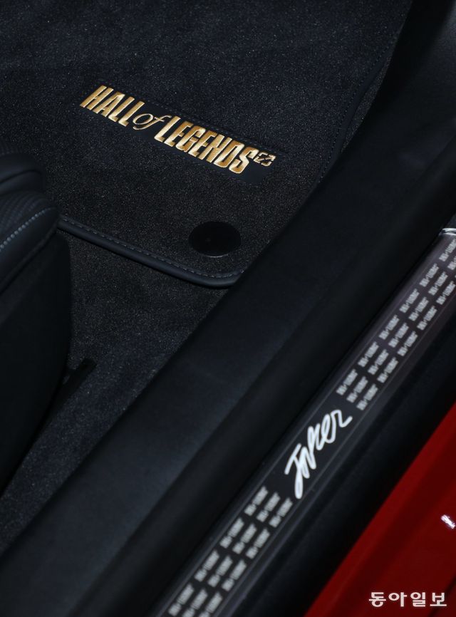 발 매트의 새겨진 ‘전설의 전당(Hall of Legends)과 문 발 받침대에 사인 조명