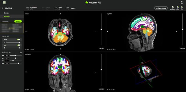 휴런AD는 알츠하이머병 등 퇴행성 뇌질환의 조기 스크리닝을 위한 AI 솔루션으로, 뇌를 98개 영역으로 자동 분할한 뒤 각 영역의 위축도를 정량적으로 분석·제공한다. 또한 환자의 연령을 함께 고려하는 위축 지수 제공을 통해 건강한 뇌 대비 위축도를 파악할 수 있도록 보조하는 MRI 기반 솔루션이다.